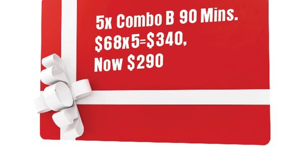 5 x Combo B 90 Mins. $68x5=$340, Now$290.